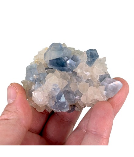 Here is a delicate piece, with bluish celestine crystals associated with dog tooth calcite.