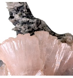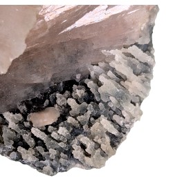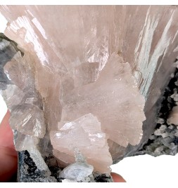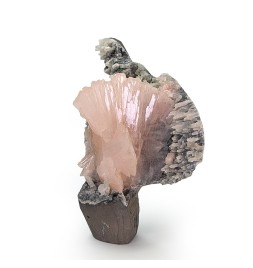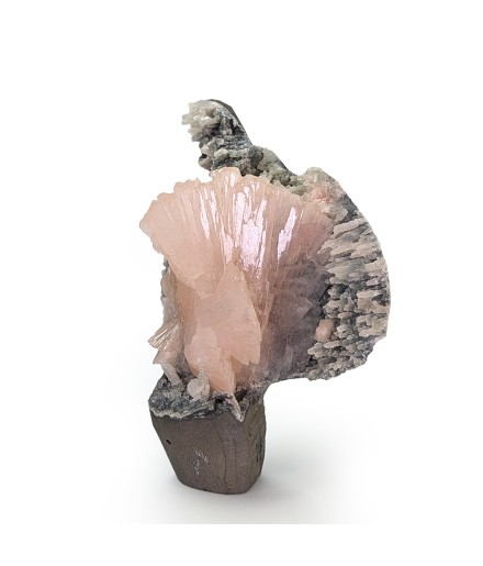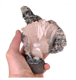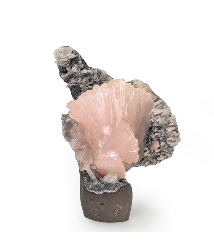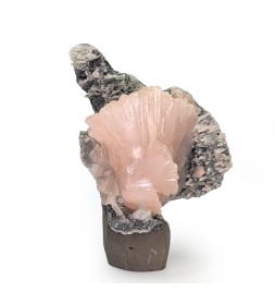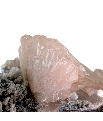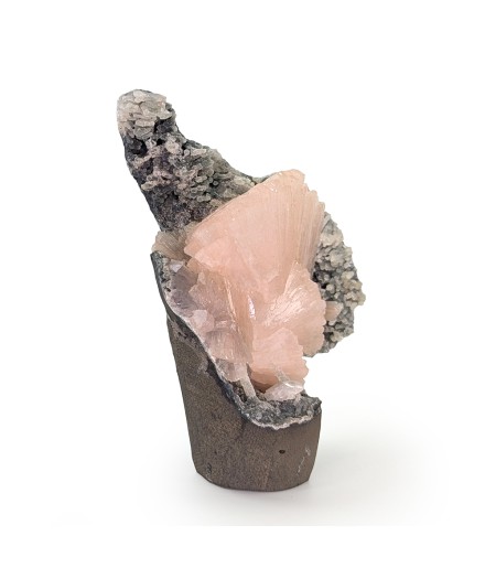 Very pretty stilbite, with a crystallization of 7.5 cm in pink-beige colour, shiny, on a basalt gangue covered with chalcedony.