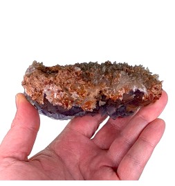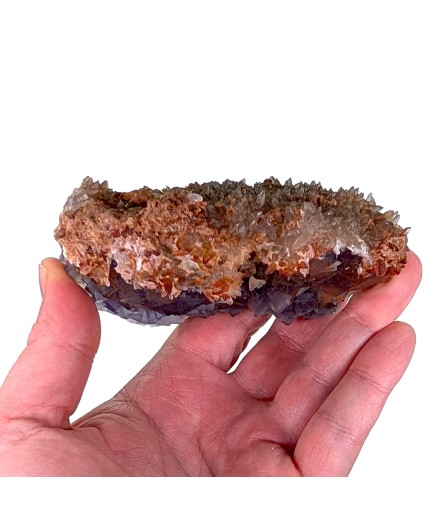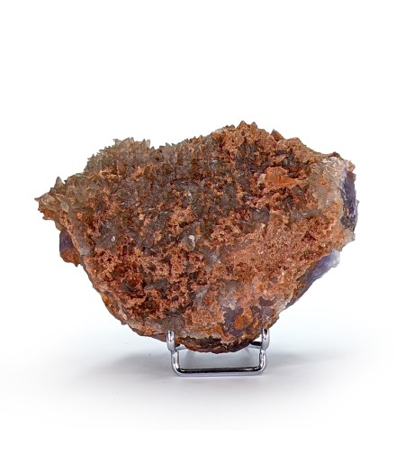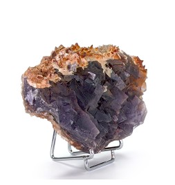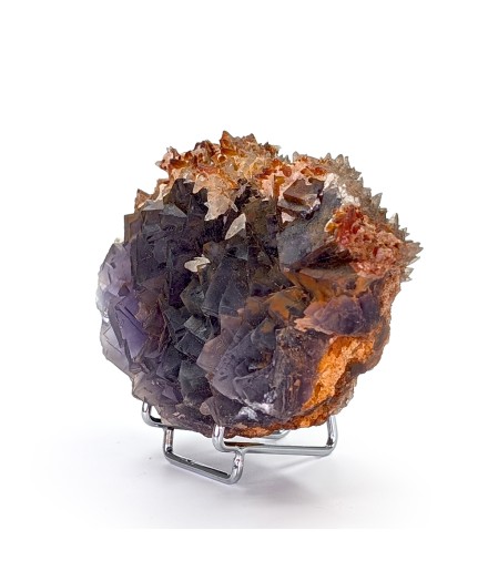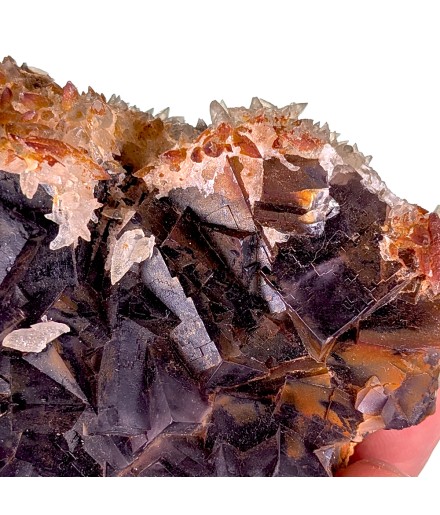 Fluorite blue-violet with a second crystallization of calcite covering the back of the piece.