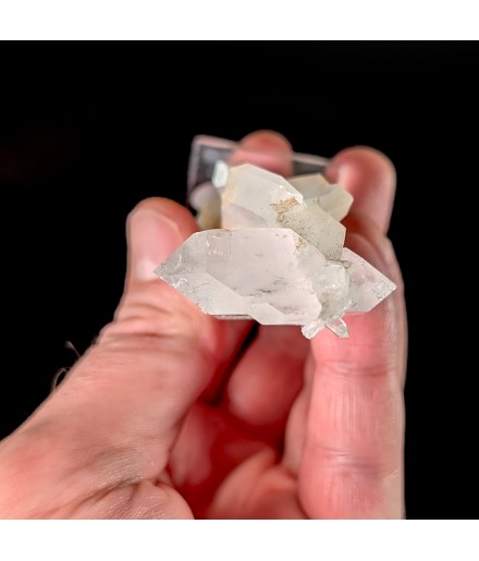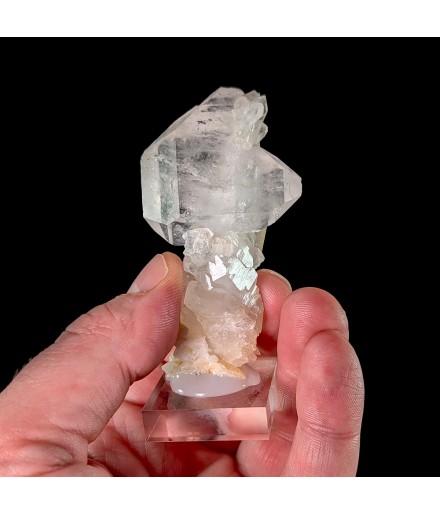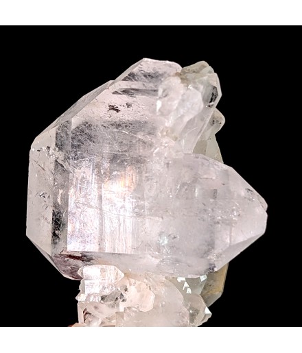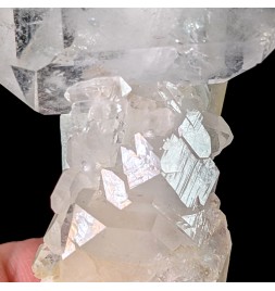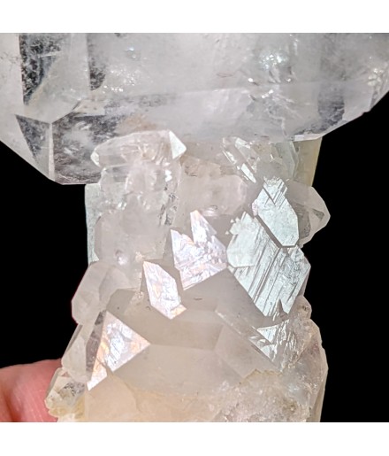 Crystal of flat quartz, with a core, carried by a column of smaller crystals.