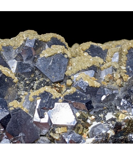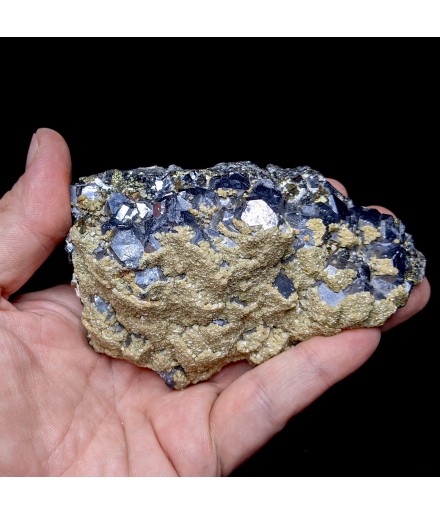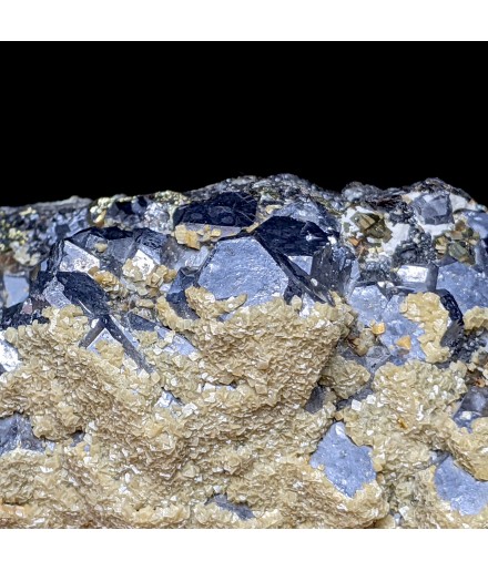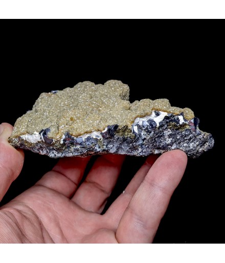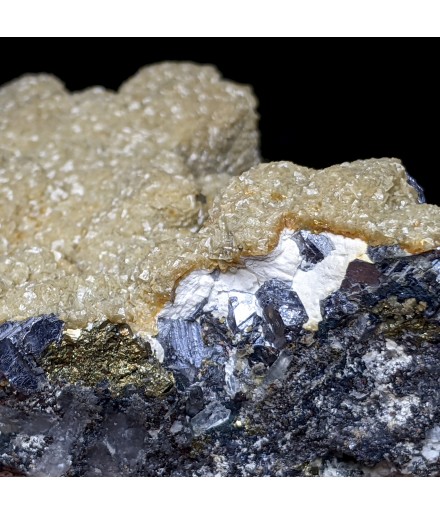 Old piece of galena covered with blonde siderite, with minor presence of pyrite.