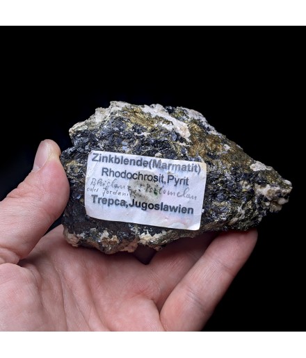 Pyrite, rhodochrosite, sphalerite, Trepca, 435 grams