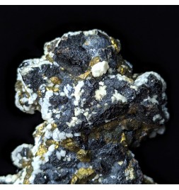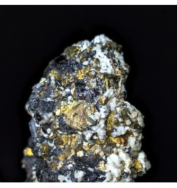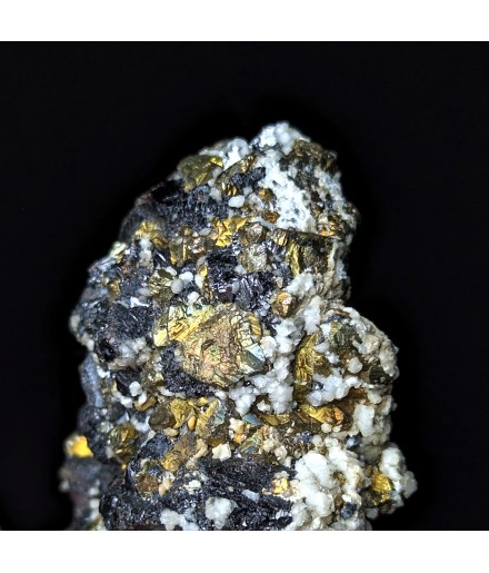 Association of sphalerite bright and chalcopyrite, with calcite on the back.
