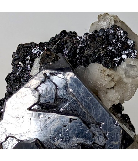Skeletal crystallization of galena accompanied by calcite, sphalerite and chalcopyrite.