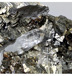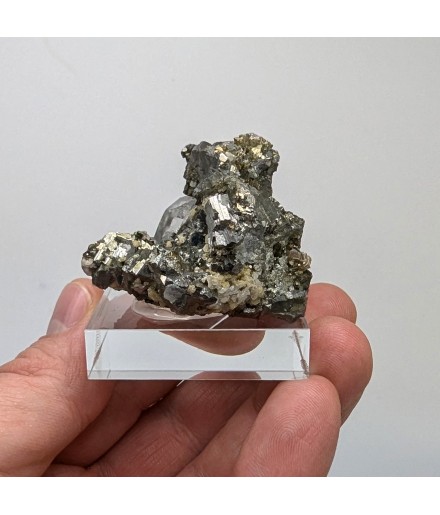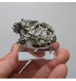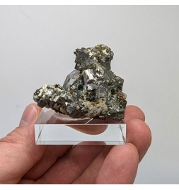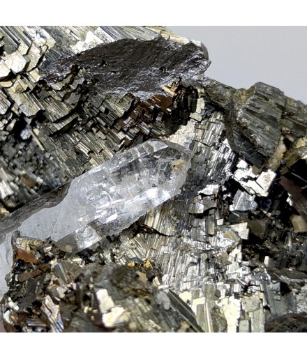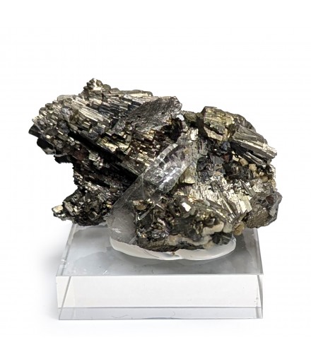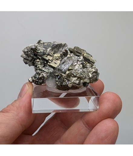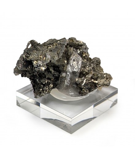 Aesthetic, it presents a golden crystallization ofarsenopyrite housing a crystal of quartz transparent.