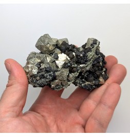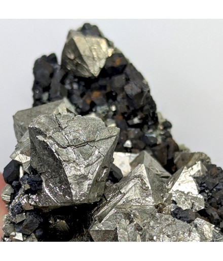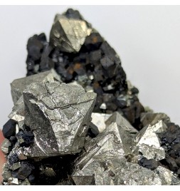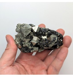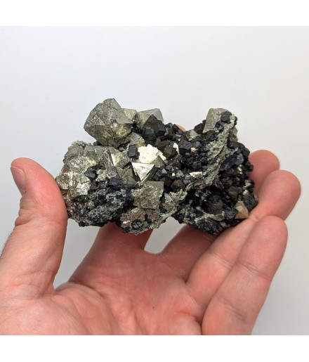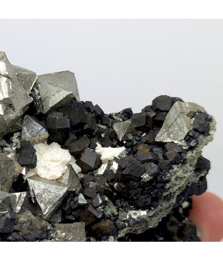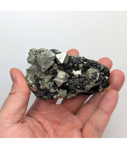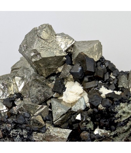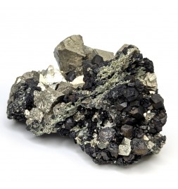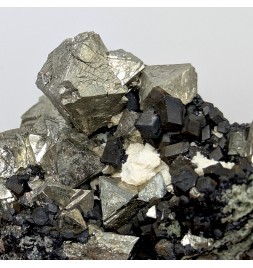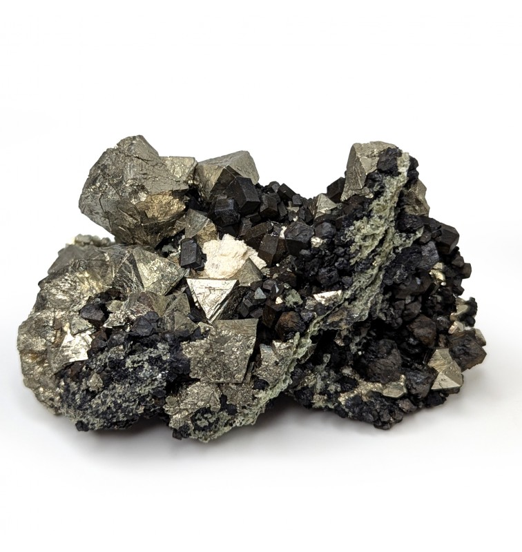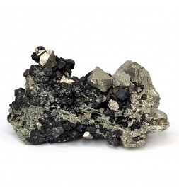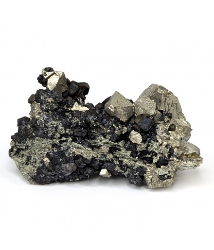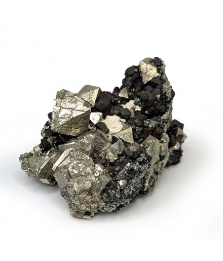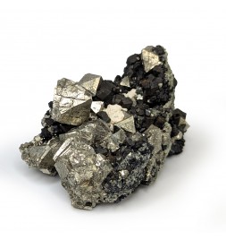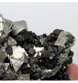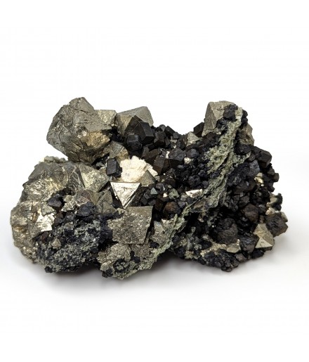 Ancient piece associating octahedrons of pyrite and crystals of magnetite.