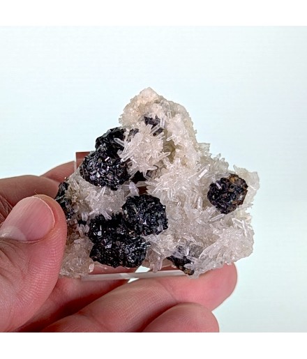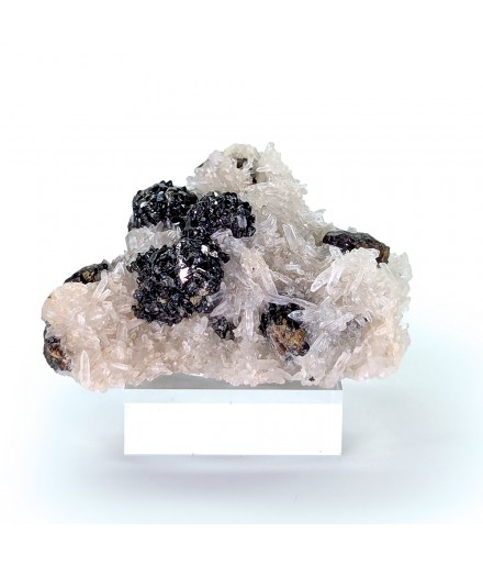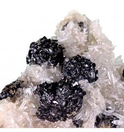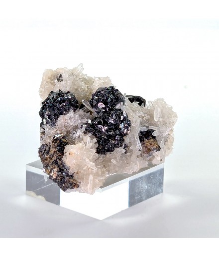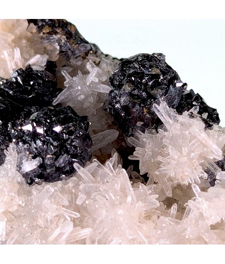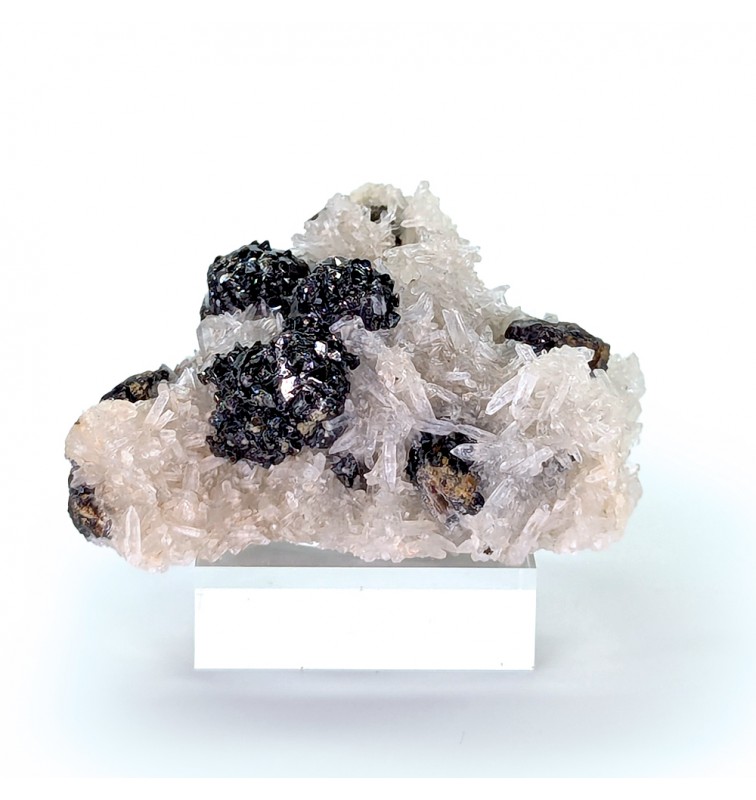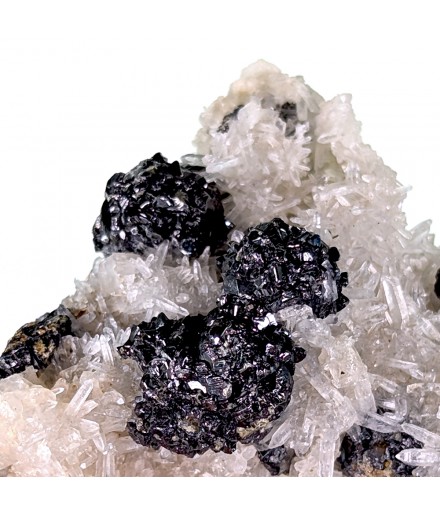 Small spherical clusters of sphalerite on a carpet of quartz tips.