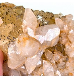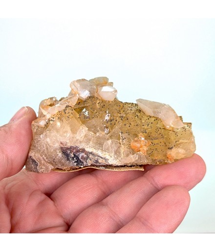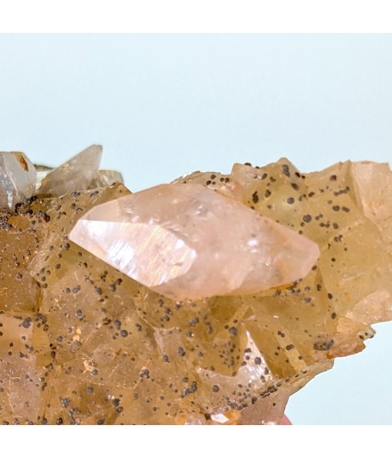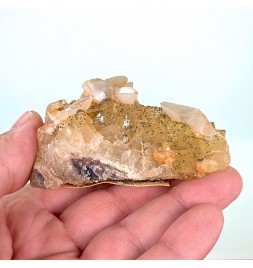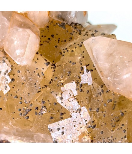 Piece made interesting by its scalenohedra of calcite, one ideally arranged on the fluorite yellow.