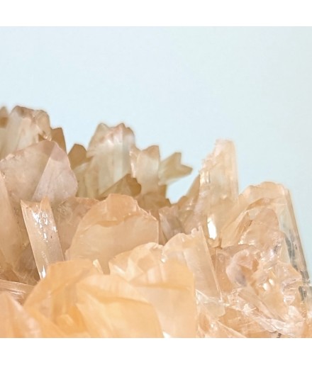 Gypsum of good quality for the deposit, with transparent crystals on white marble.
