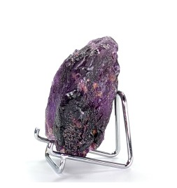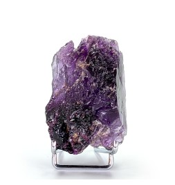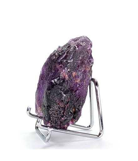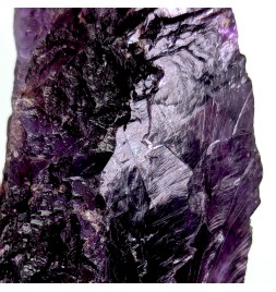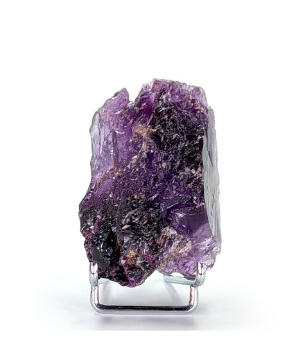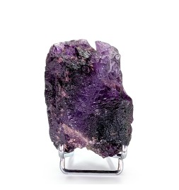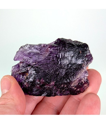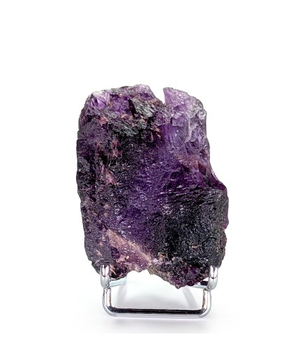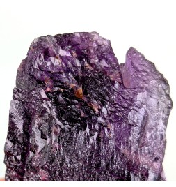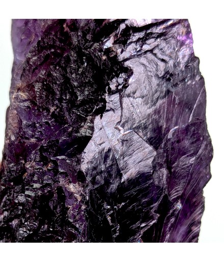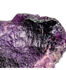 Floating sample of purple fluorite, with a typical melted aspect of this deposit as well as a flat side (cleavage).