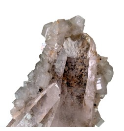 Nice piece featuring two transparent quartz crystals with one side covered by green and transparent apatite crystals.