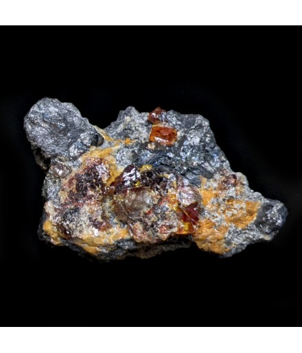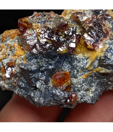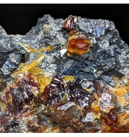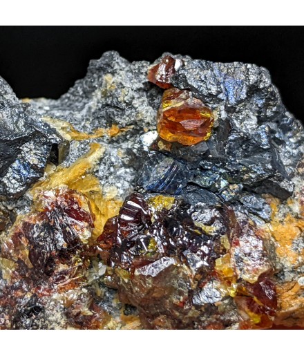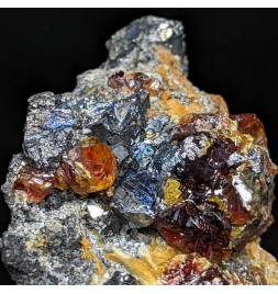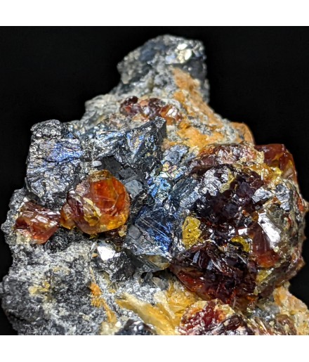 Alpine association of a gem crystallization of sphalerite on a gangue of tetrahedrite and bournonite.