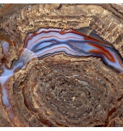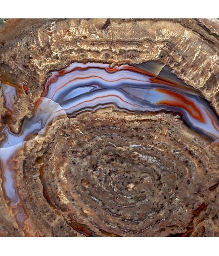 Lithophyse sawn and polished with a dominant red and a blue gray smile!