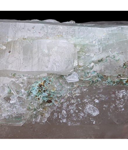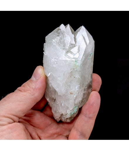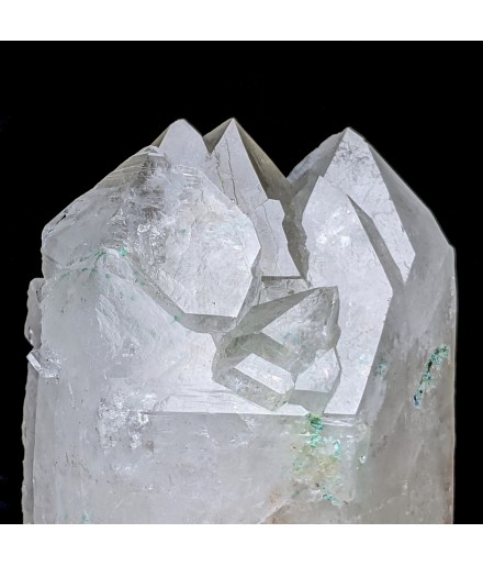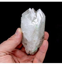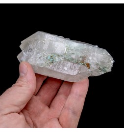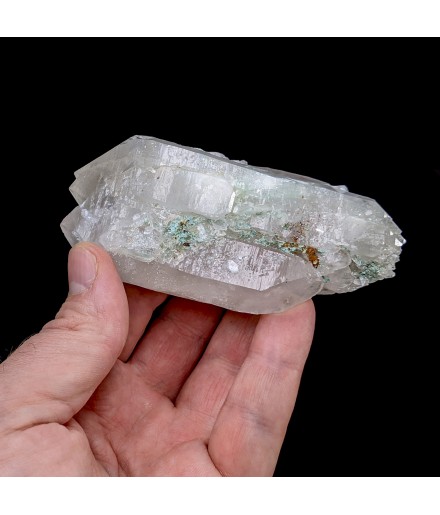 Piece of bi-terminated quartz with the presence of malachite resulting from the transformation of tetrahedrites from the sector.