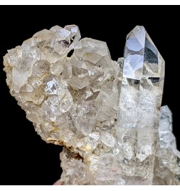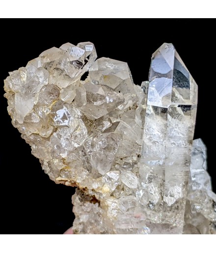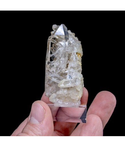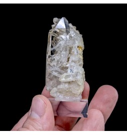 It is composed of a fairly flat main crystal embedded in a group of smaller crystals.