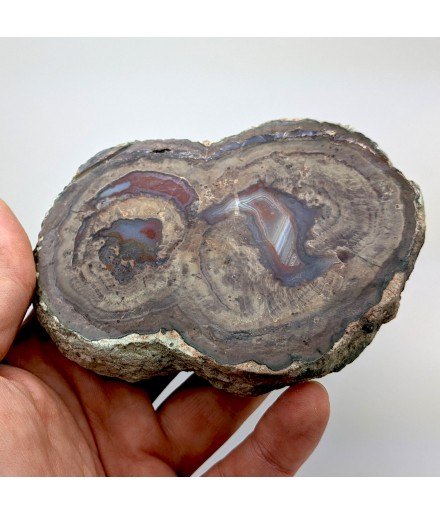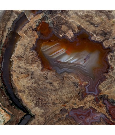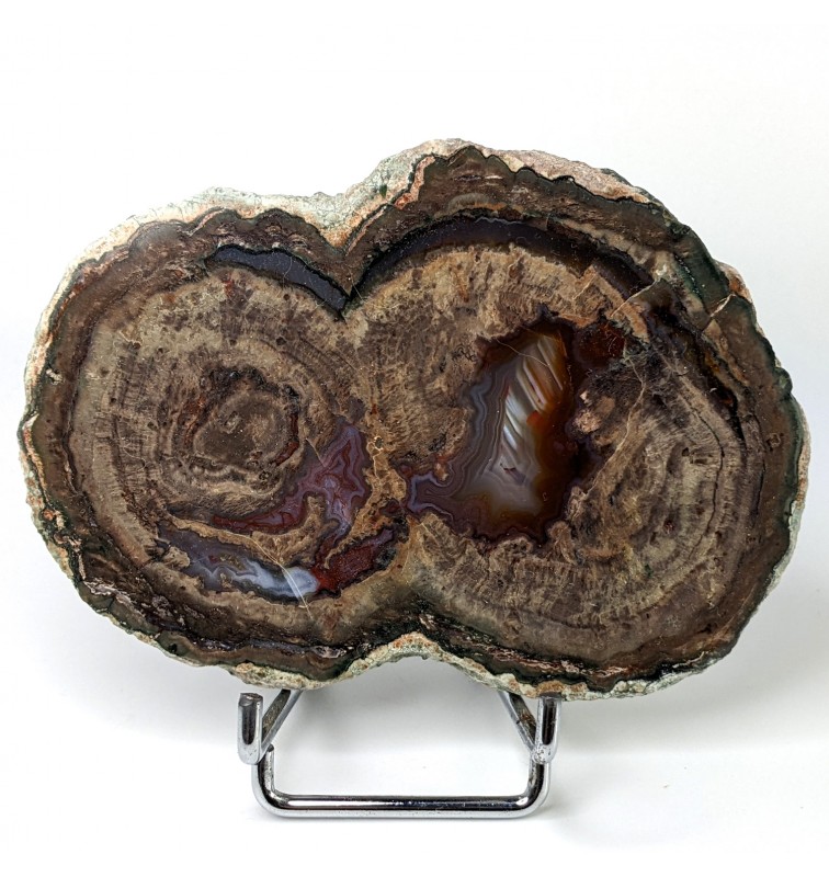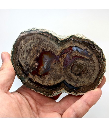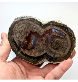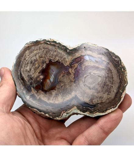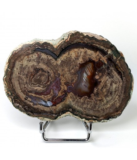 Slice of lithophyse with a double heart, polished on both sides and glossed on one side (shiny).