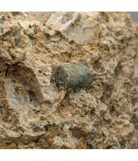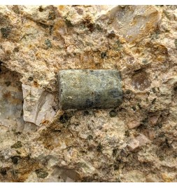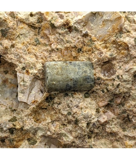 Sample of pinite on gangue, variety of muscovite here in pseudomorphosis of a cordierite crystal.