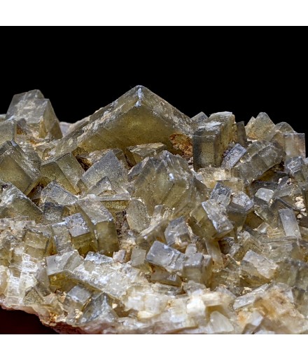 Carpet of tabular crystals of baryte brown yellow, of good quality for the deposit.