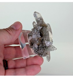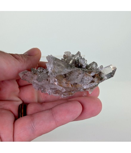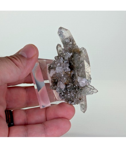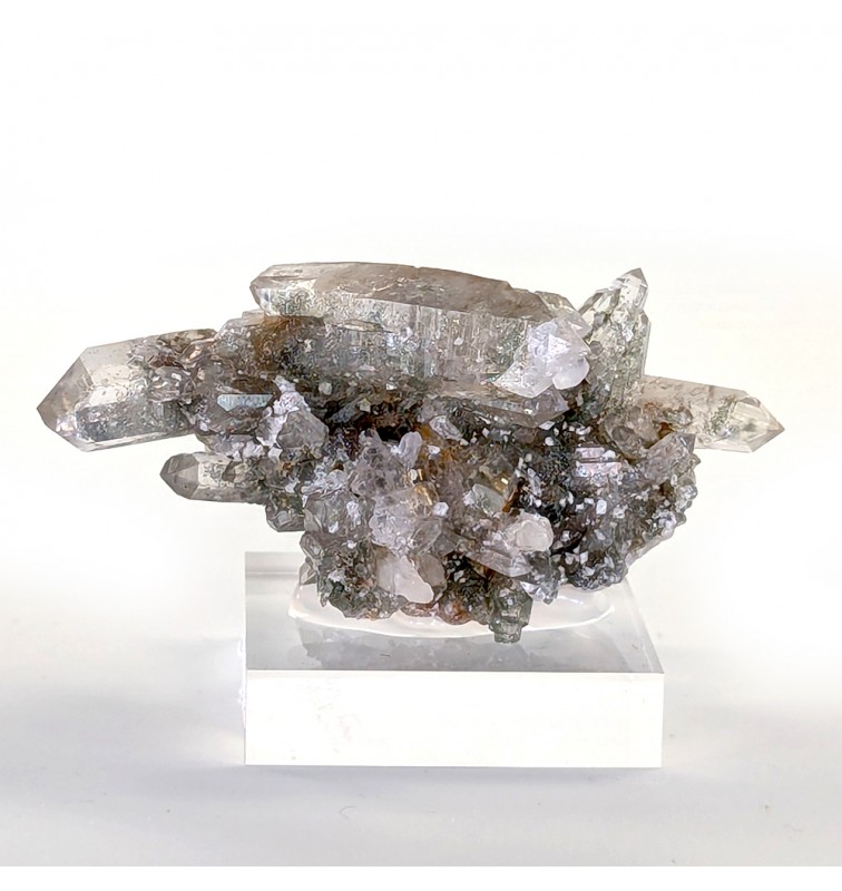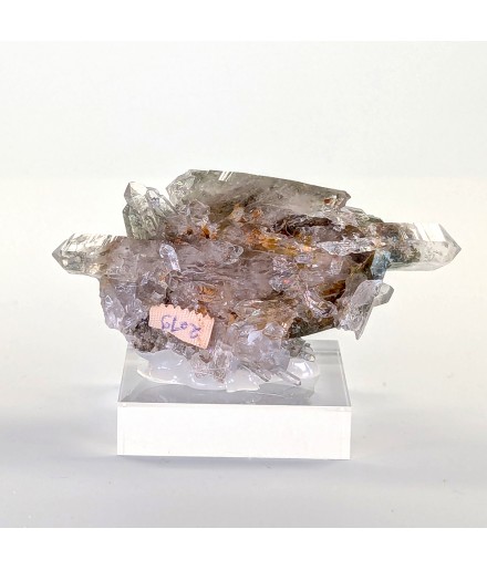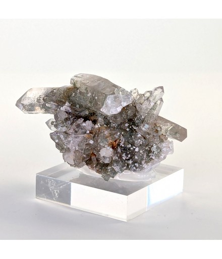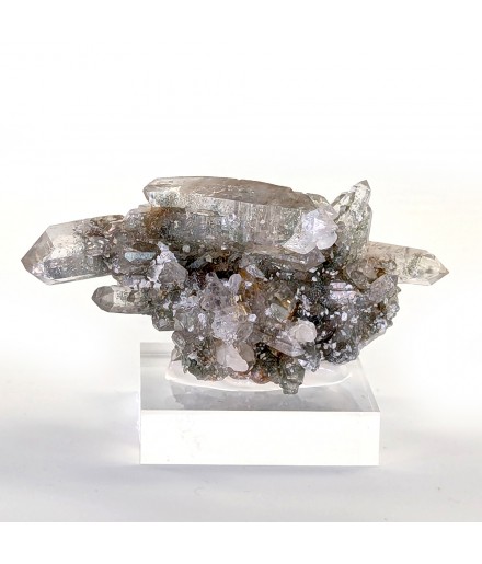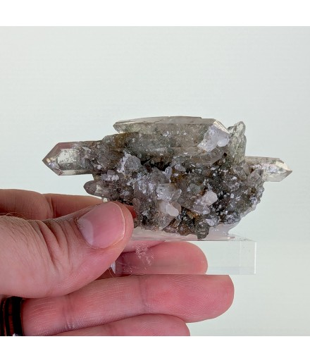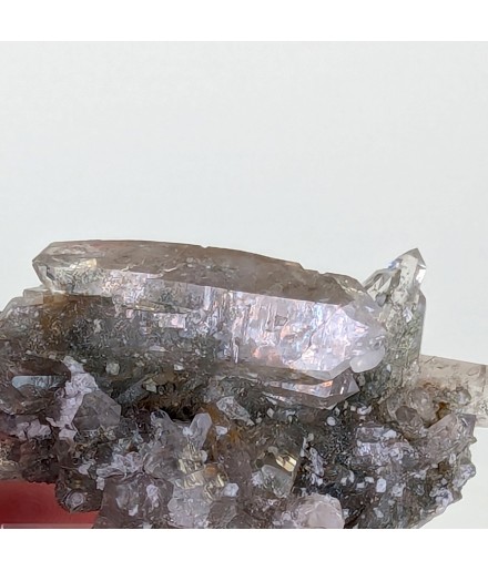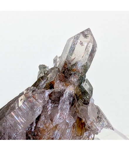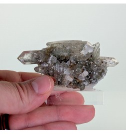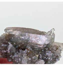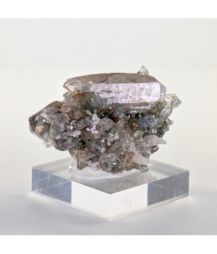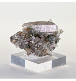 Nice piece of quartz slightly chlorite, topped by a slightly curved biterminated crystal.