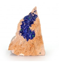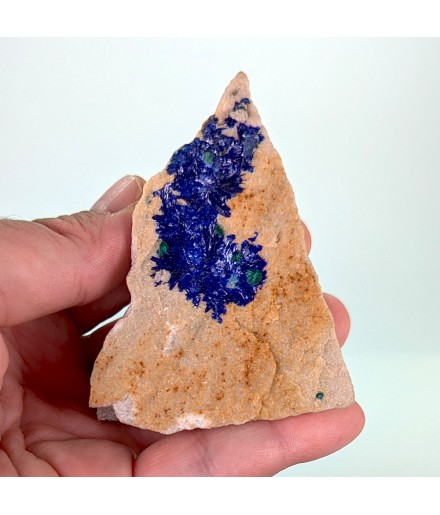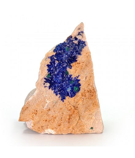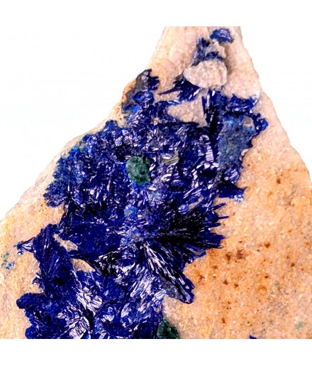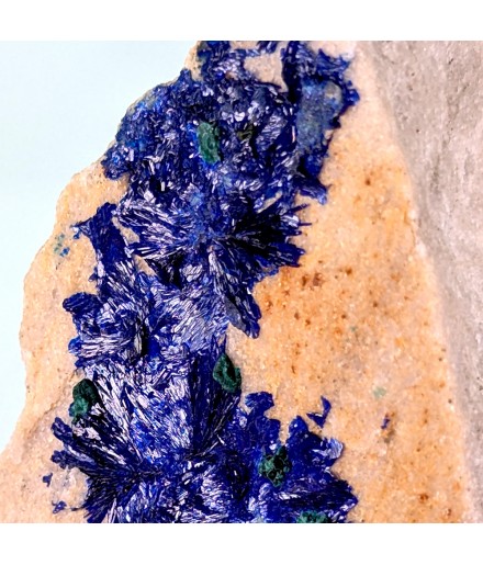 Sample ofazurite flat, shiny, star-shaped, accompanied by a little malachite, on gangue.