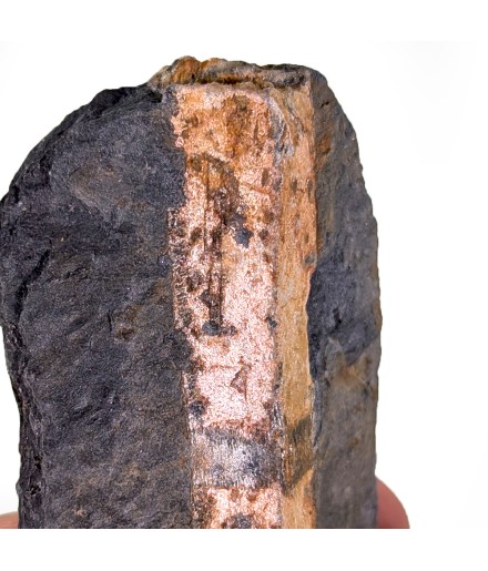 Unfinished crystal ofandalusite on black shale, measuring over 5 cm long.