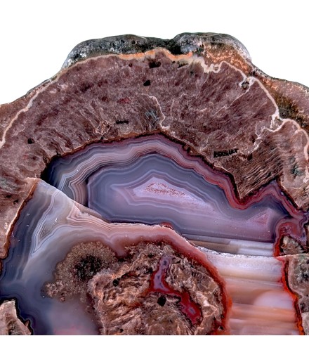 Nodule of lithophyse cut in half and polished, offering a beautiful pattern with well-defined colours.