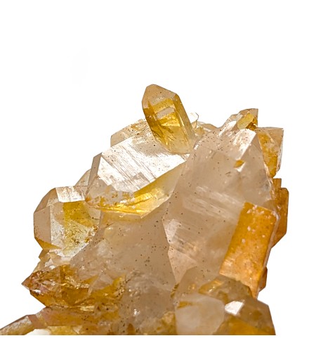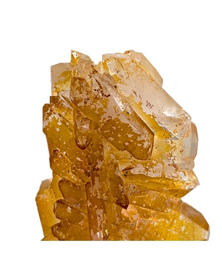 Aesthetic small column of quartz crystals, gilded by surface oxides.
