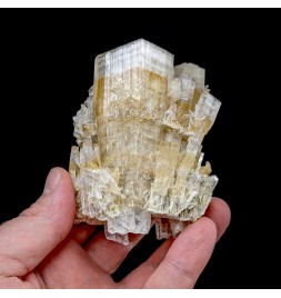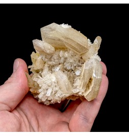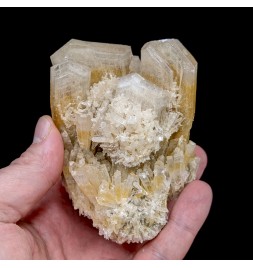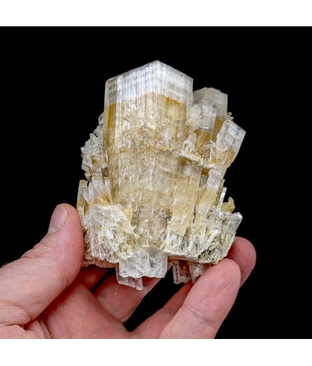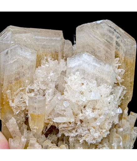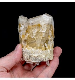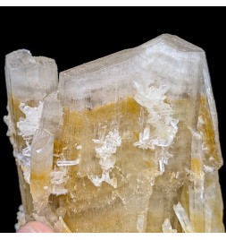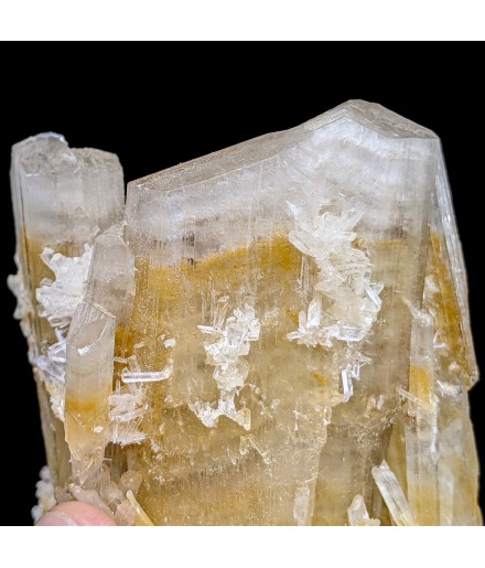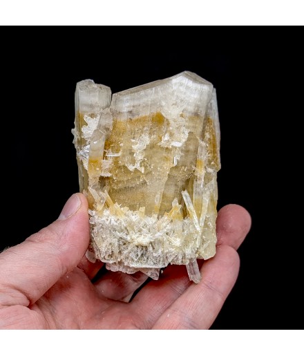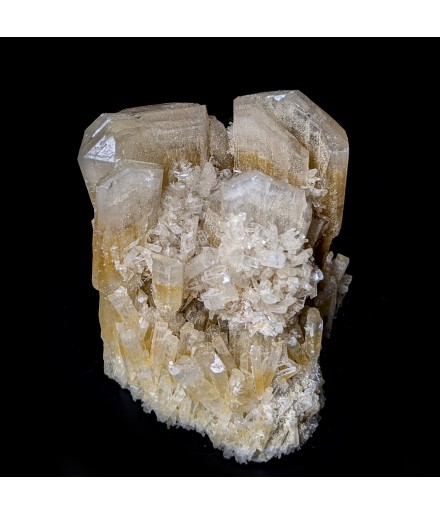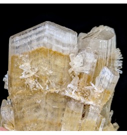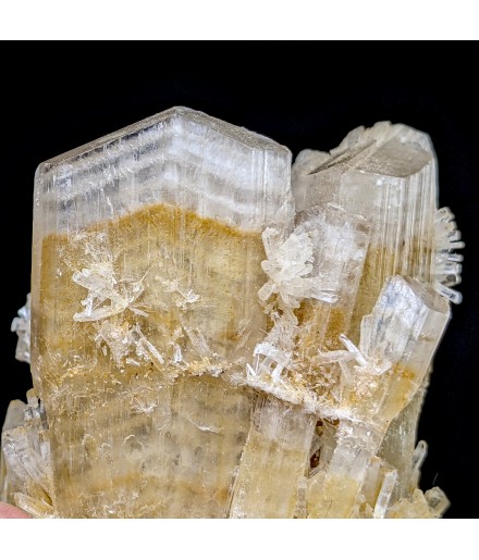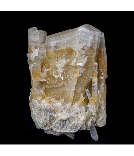 A pleasant presentation for this two-tone gypsum with two large main crystals framing smaller and smaller crystals, forming an almost cylindrical specimen.