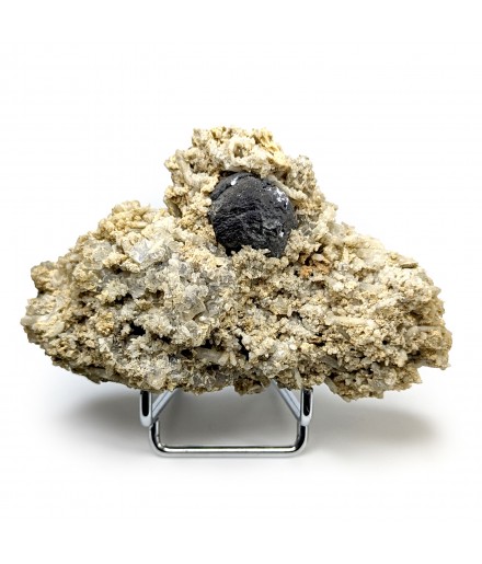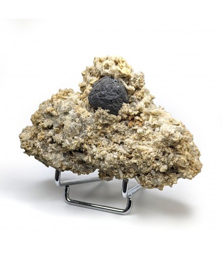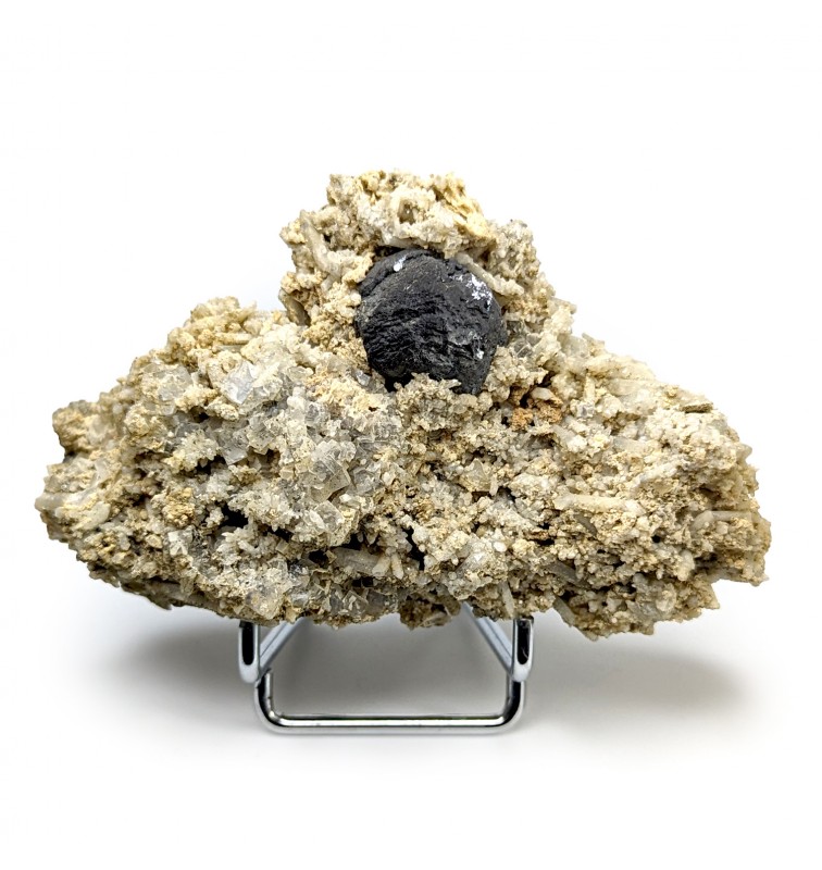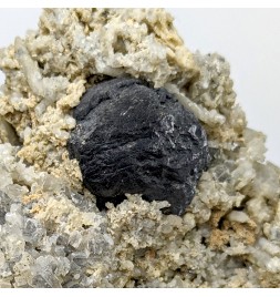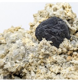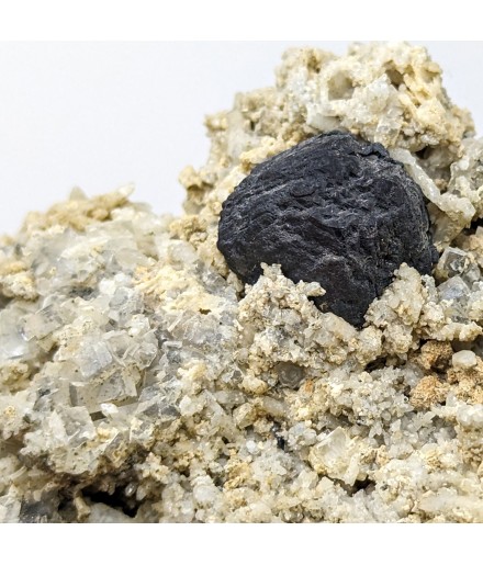 Floating piece, fully crystallized by quartz and a crystal of sphalerite ideally arranged. We can note the discreet presence of crystals of fluorite transparent.