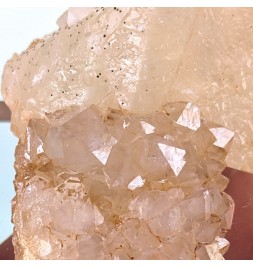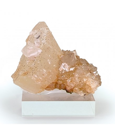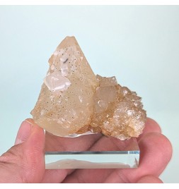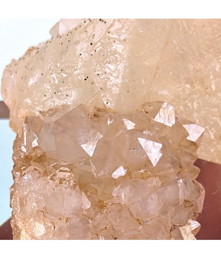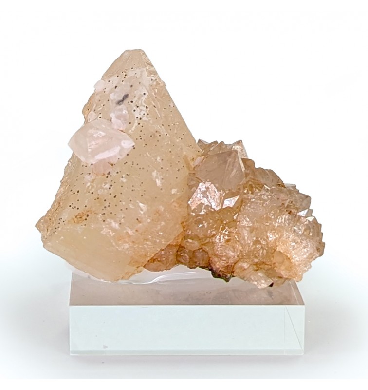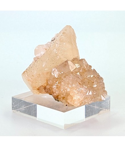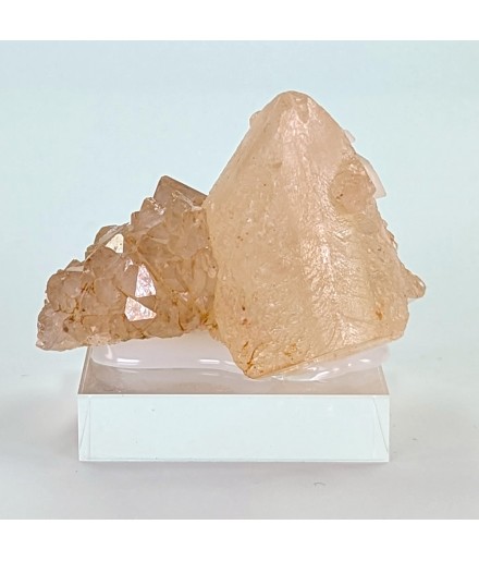 Cute piece associating a crystal of calcite with crystals of quartz.