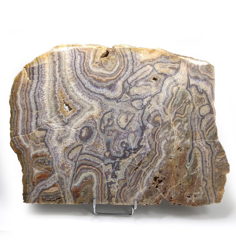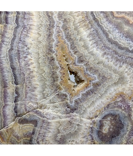 Polished slice of banded agate from Châtelperron, Allier, Auvergne-Rhône-Alpes, France.