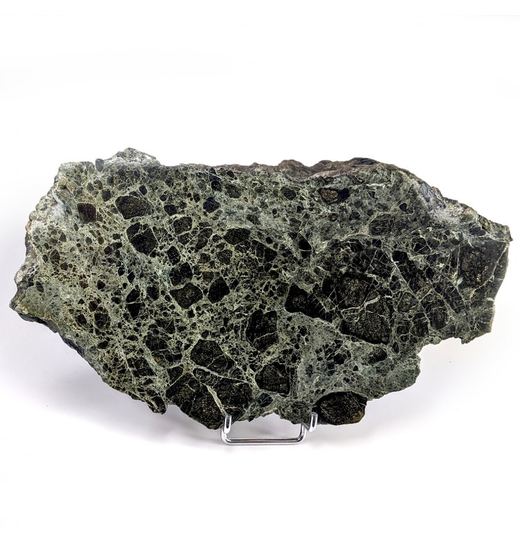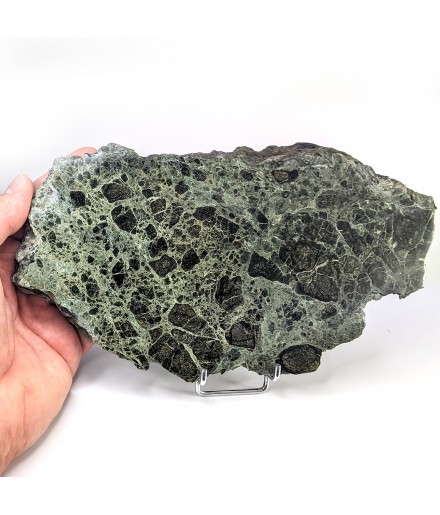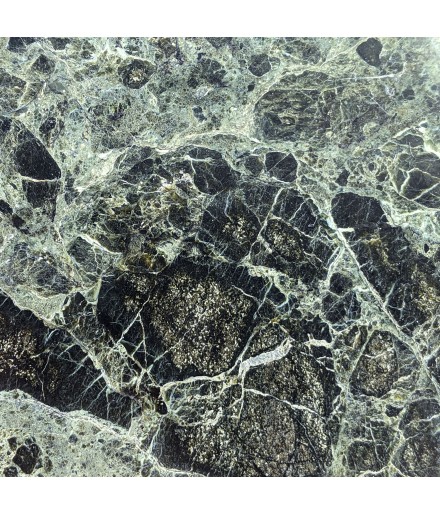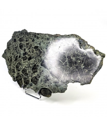 Polished slice of green serpentine from Puy de Wolf, Aveyron, France.