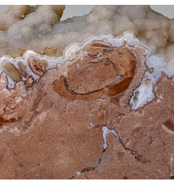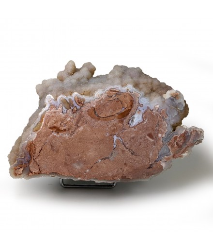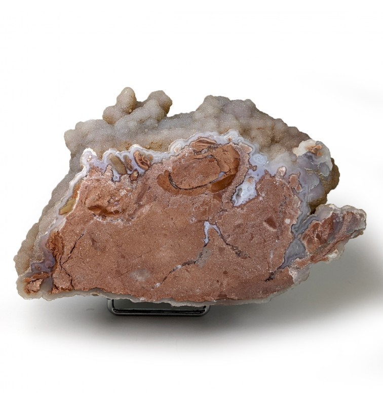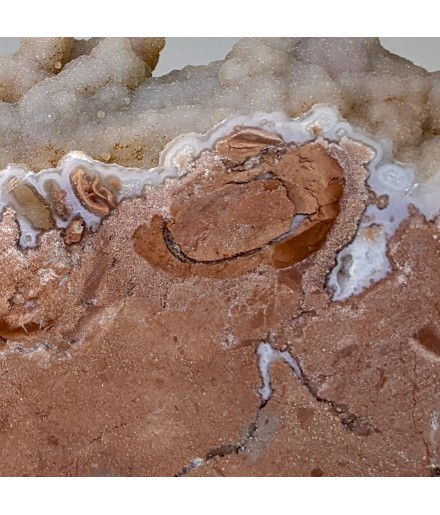 Polished slice of youngite, name of a variety of agate covered with a micro-crystallization of shiny quartz.