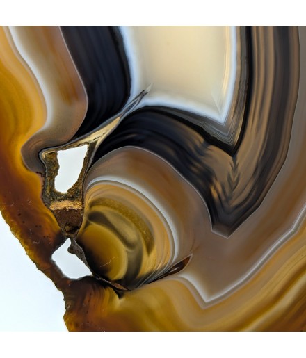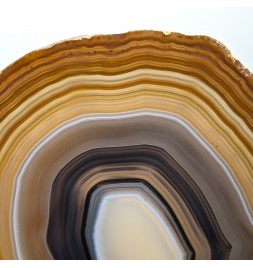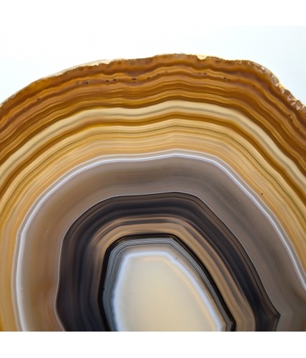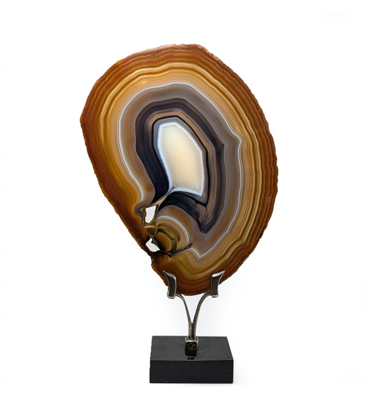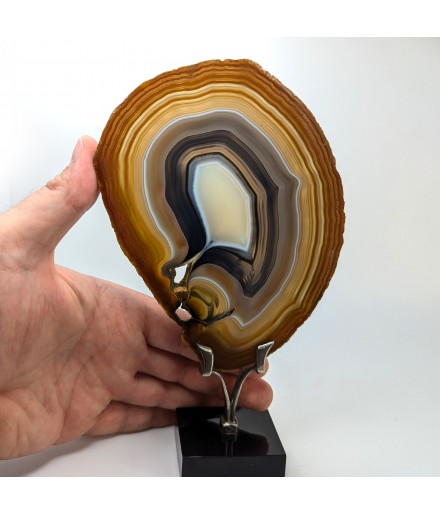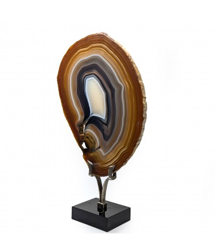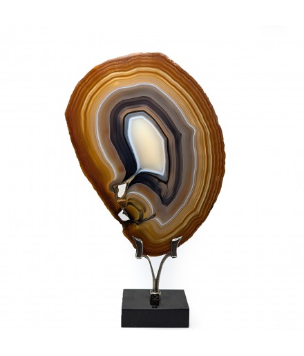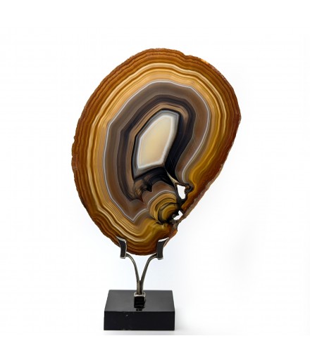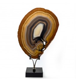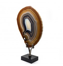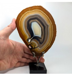 Pretty slice ofagate in yellow brown shades mounted on a base.
