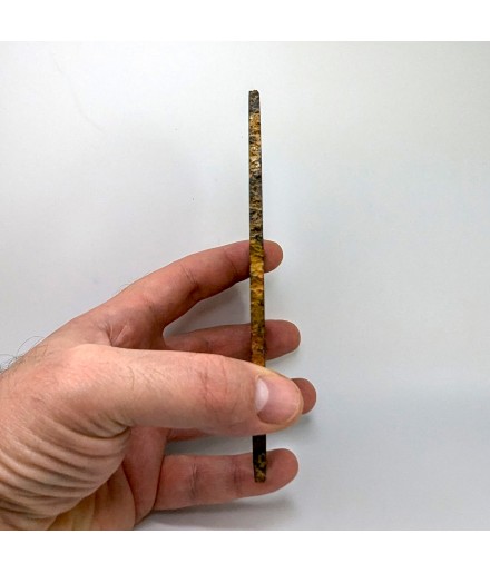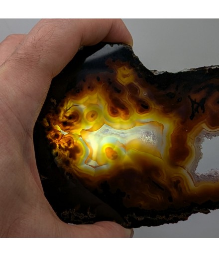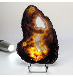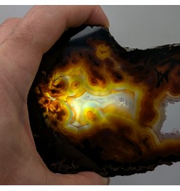 This agate measures 13 cm long by 9.6 cm wide and 0.5 cm thick.