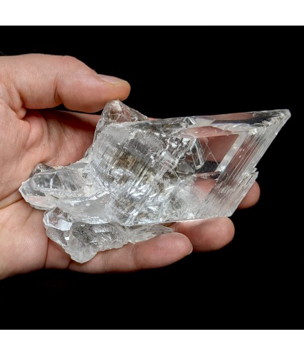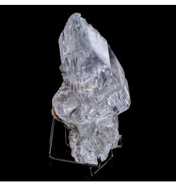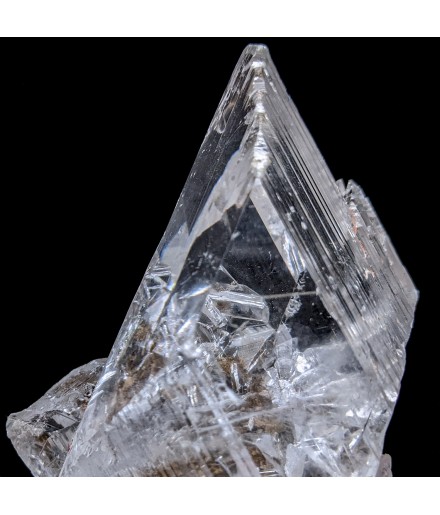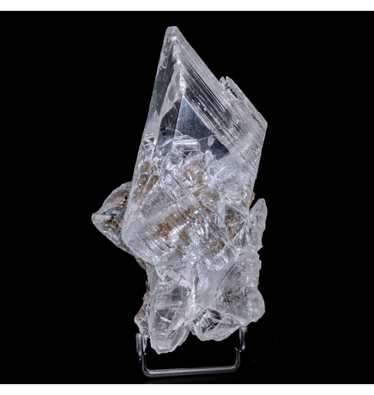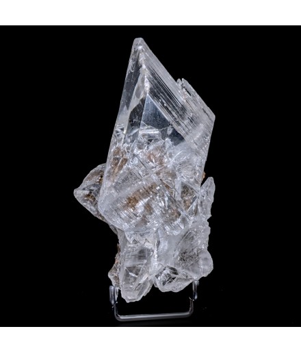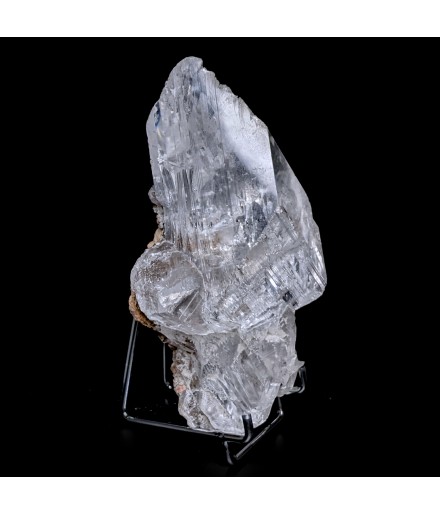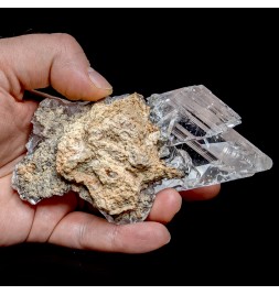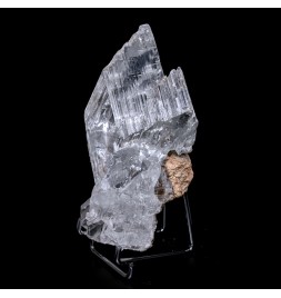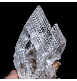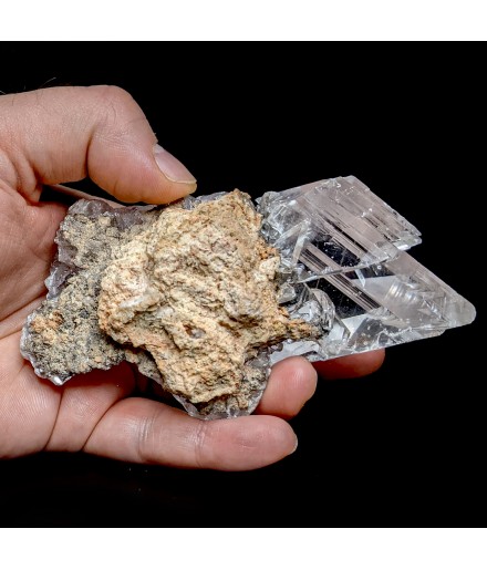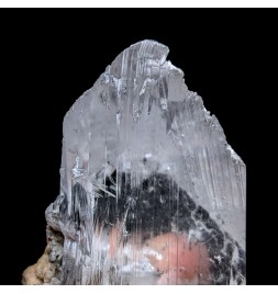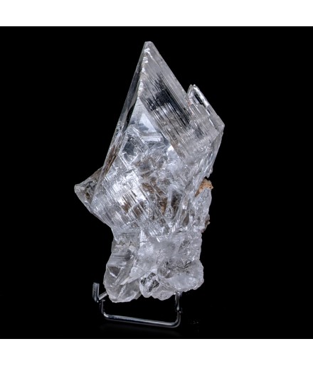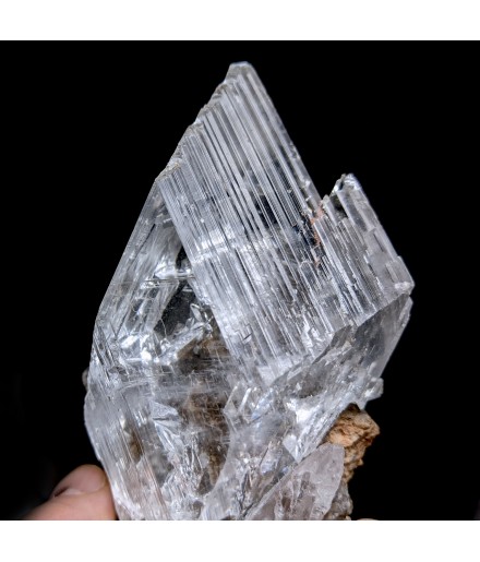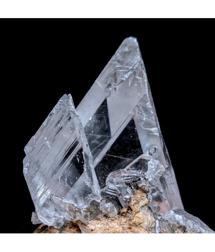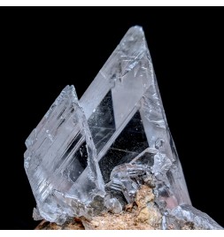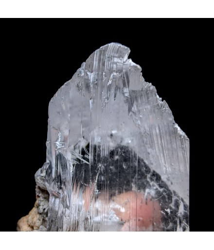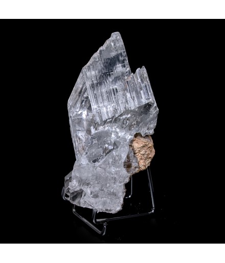 Aesthetic gypsum var. selenite on matrix, with a fully transparent crystal, with marked striations and slightly blunted edges.
