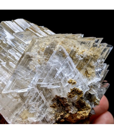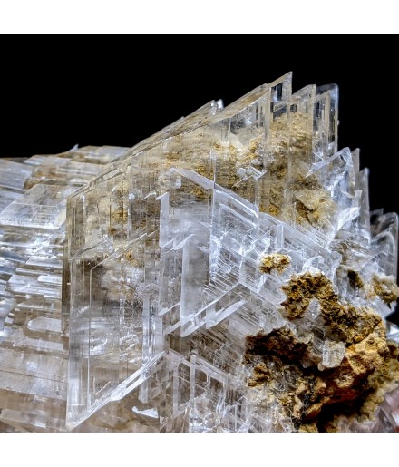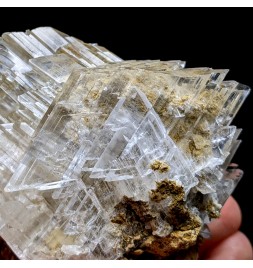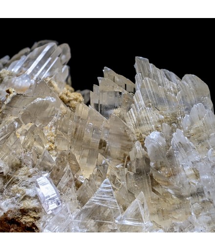 Crystals of gypsum var. selenite forming a richly crystallized piece, letting the gangue be seen through transparency.