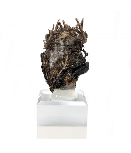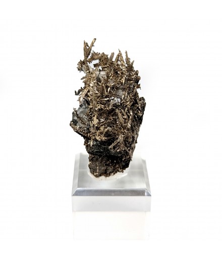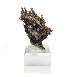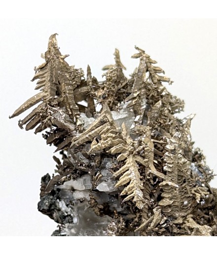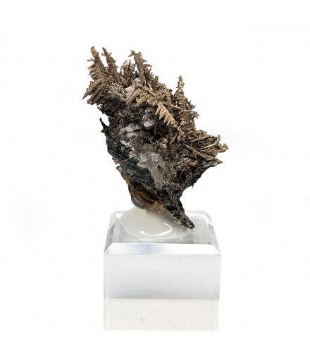 Aesthetic native silver with beautiful dendrites on a rock and calcite gangue.