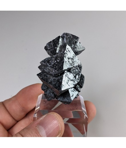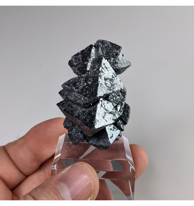 This aesthetic specimen measures 4.9 cm high by 3.2 cm wide, the largest crystal has an edge of 2.6 cm.